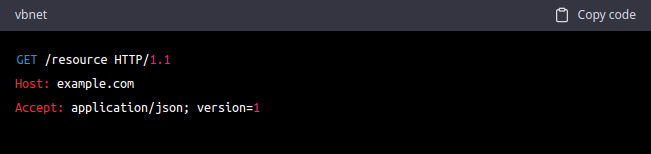In this example, the client is making a request to the ‘/resource’ endpoint, and including a custom header ‘Api-Version: 1’. The server reads the header and responds with the appropriate version of the resource. -